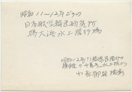 | 大阪府堺大浜 日本航空輸送研究所(堺水上飛行学校) 昭和11〜12年頃 小森郁雄撮影 |
