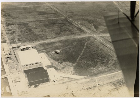 | 名古屋飛行場全景 昭和11年春、小森撮 手前の格納庫が三菱航空機の格納庫 |