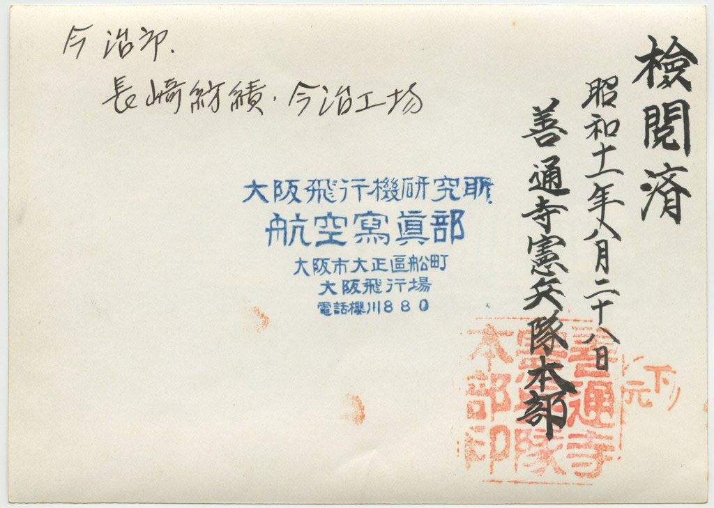今治市 長崎紡績、今治工場 検閲済 昭和十一年八月二十八日 善通寺憲兵隊本部 |