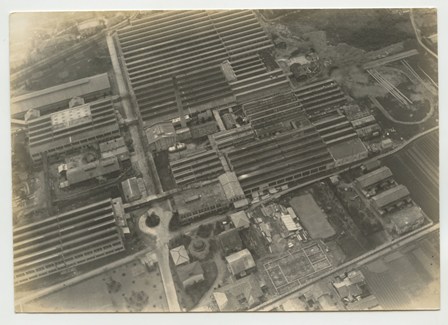 現在、工場は山科団地となっている。写真右下には京都市立山階尋常高等小学校(現在の京都市立山階小学校)が見えている