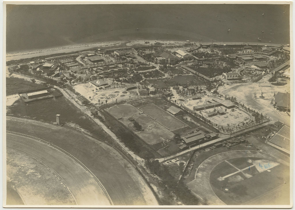 現在は浜甲子園運動公園となっている。写真右上は鳴尾競馬場