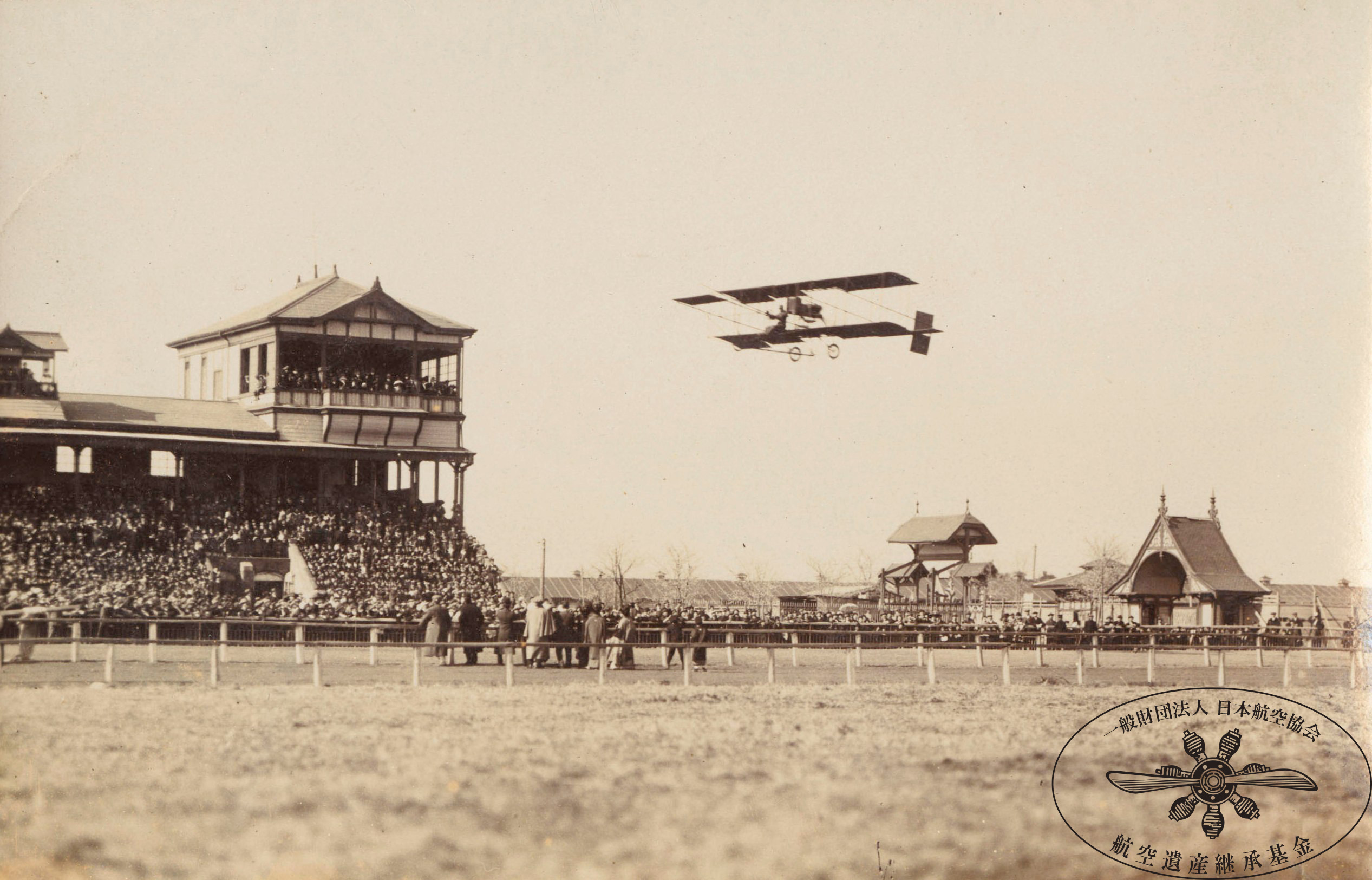 こうした飛行会を初めて催したのは、1911年、大阪府の城東練兵場、兵庫県の鳴尾競馬場、東京都の目黒競馬場、京都府の島原競馬場、愛知県の名古屋港埋立地、神奈川県の川崎競馬場を巡業したアメリカのボールドウィン飛行団です。