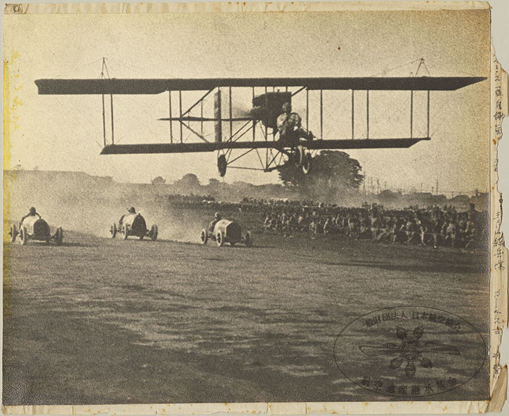 冒頭で紹介した写真は、川崎競馬場に集まった観衆の前で、ボールドウィン飛行団のマース飛行士が飛ぶ様子です。 |