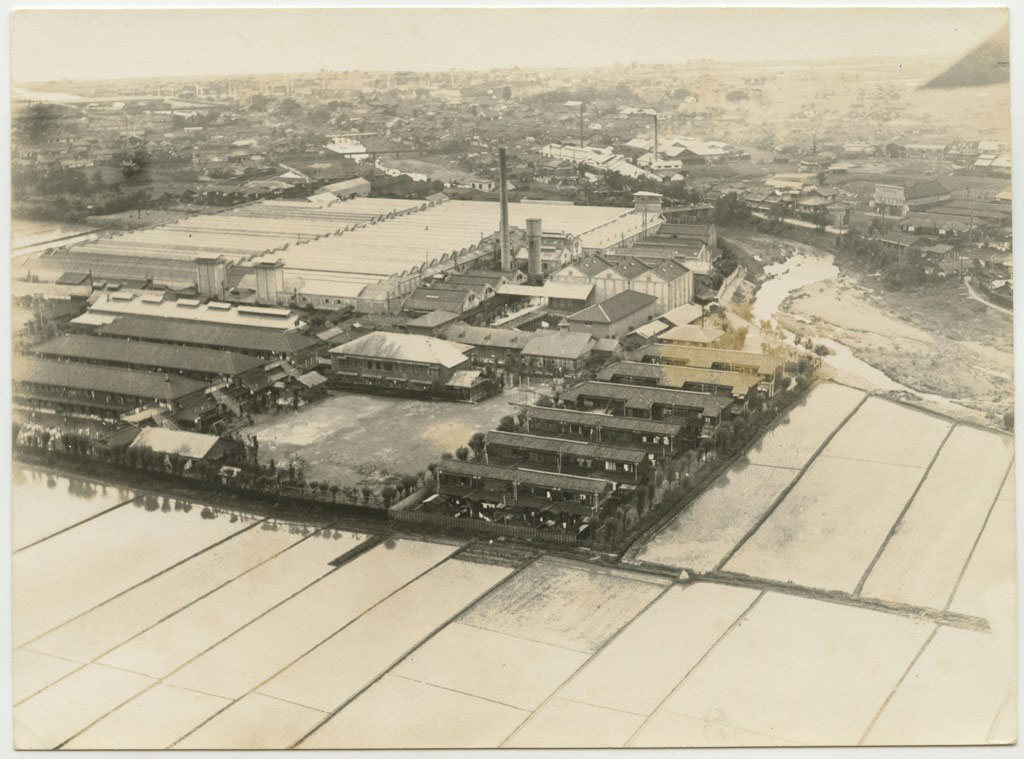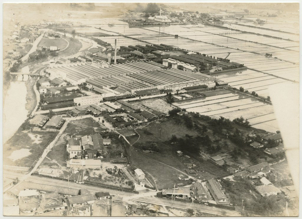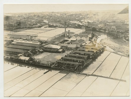 工場西側(写真下側)の線路は南海鉄道阪堺線(現在の阪堺電気軌道(株)阪堺線)