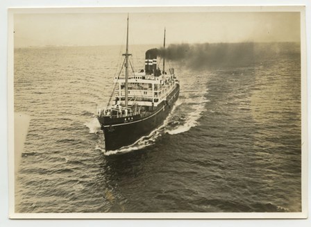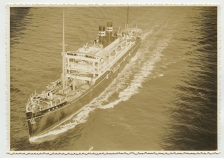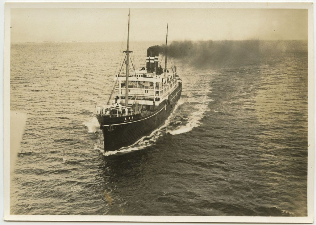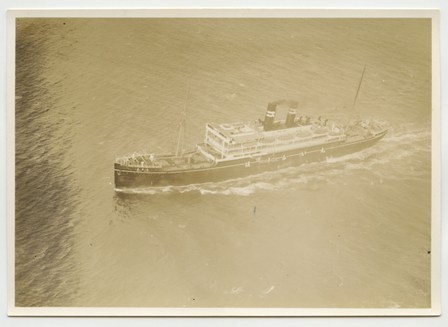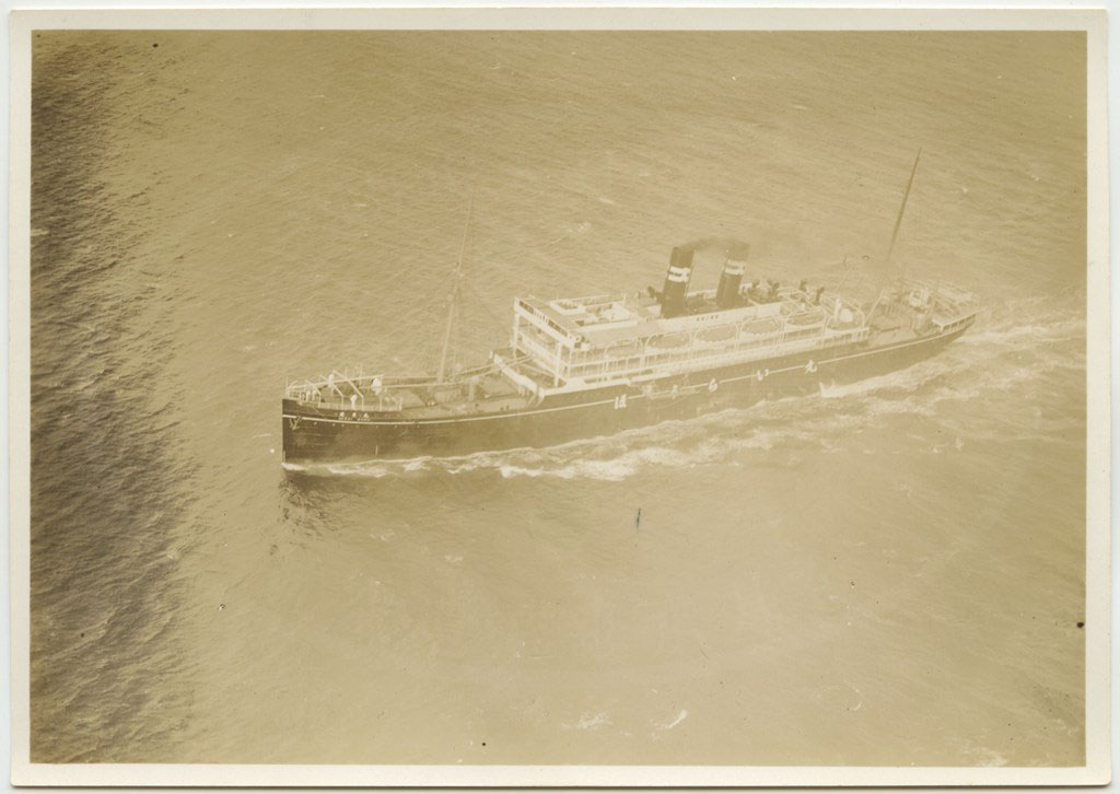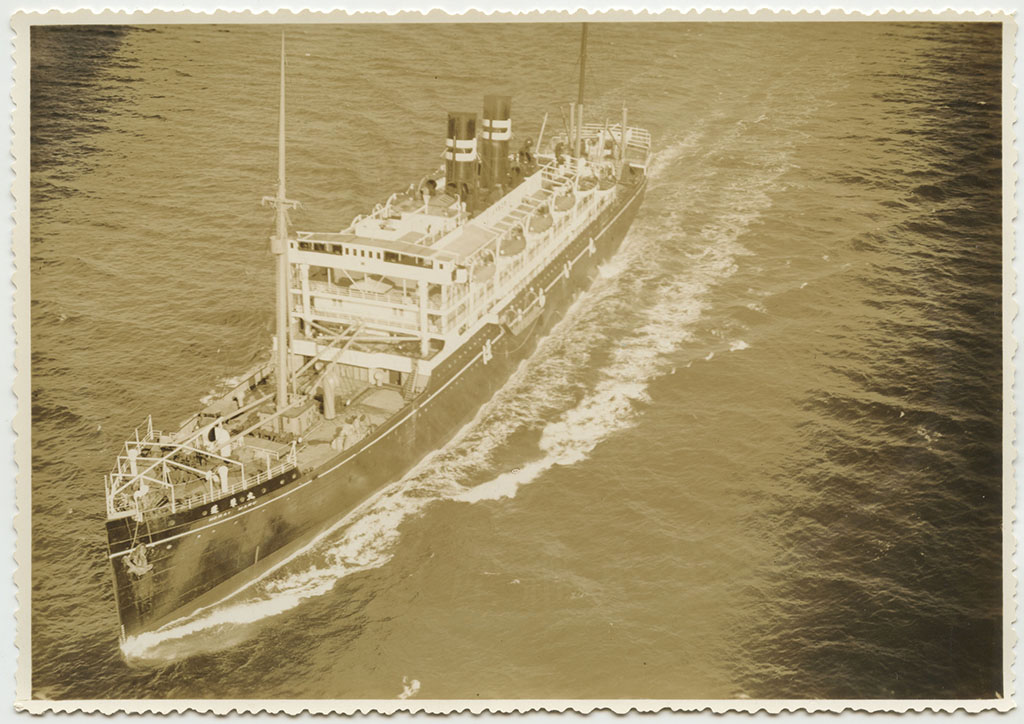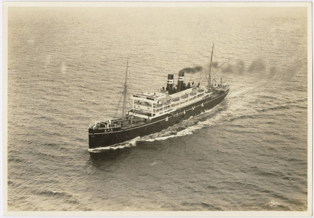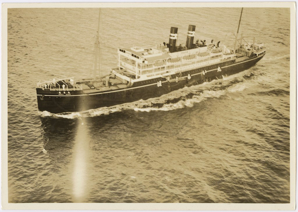 蓬莱丸は大阪商船の所属。小森郁雄は『航空情報』189号で「大阪商船から頼まれて新造船の空中撮影も数回やり、大きなビラや宣伝パンフレットに使われたりした」と回想している。