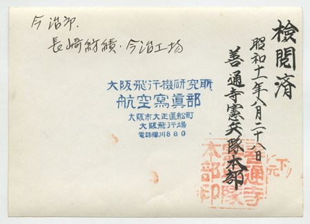 今治市 長崎紡績、今治工場 検閲済 昭和十一年八月二十八日 善通寺憲兵隊本部 |