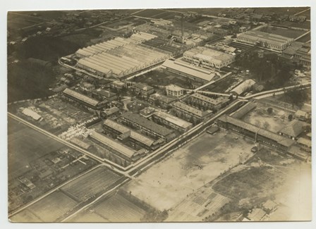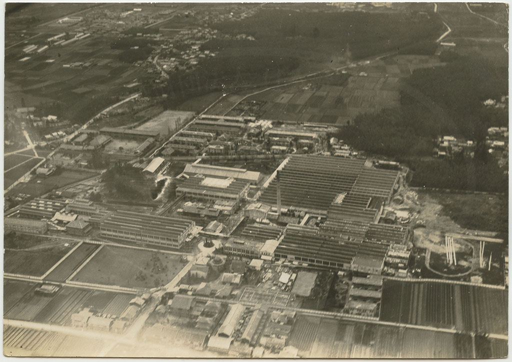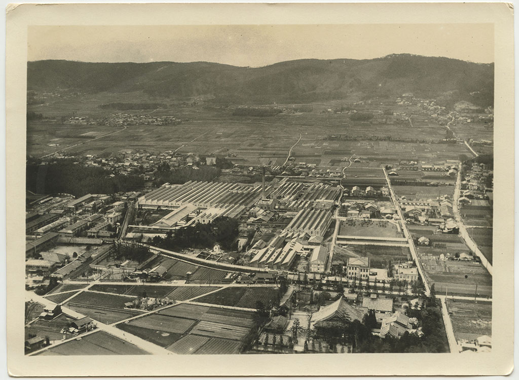現在、工場は山科団地となっている。写真右下には京都市立山階尋常高等小学校(現在の京都市立山階小学校)が見えている
