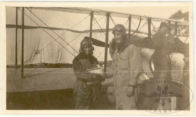 38 / 144 枚目 白戸式37型。大蔵清三(左)と高橋信夫(右)。1922年11月3日に開催された第5回懸賞郵便飛行大会での撮影。 「男爵の愛した翼たち」(上)106ページ掲載 画像ファイル名:AHA-MA-001-009-004.jpg |