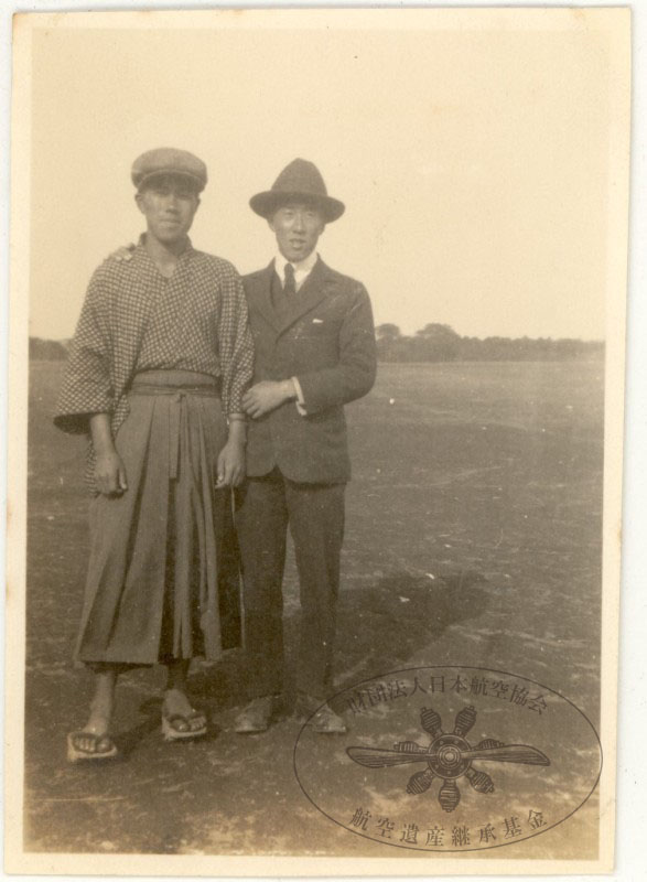91 / 144 枚目 平松牛郎(左)と南部信鑑(右)。1922年11月3〜11日に開催された第5回懸賞郵便飛行での撮影。 画像ファイル名:AHA-MA-001-019-010.jpg |