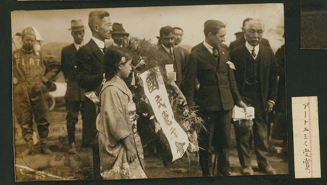 4/316枚目 画像ファイル名:SA-001_cover_02-04.jpg 【オリジナルキャプション】 アートスミス受賞 アート・スミス(Art Smith)飛行士と(右)櫛引弓人(くしびきゆみと)マネージャー。1916(大正5)年、撮影地未詳。 参考 国民飛行会編輯部,1916,『飛行機の持ち来りたる日米の親善』国民飛行会,国立国会図書館デジタルコレクション https://dl.ndl.go.jp/pid/942696 :p.15 |