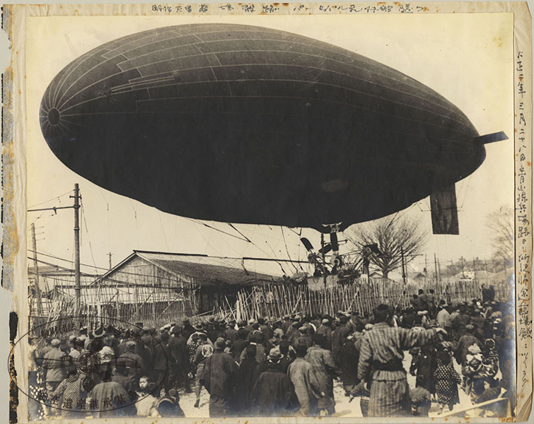 297/316枚目 画像ファイル名:SA-001_extra-08-01.jpg 【オリジナルキャプション】 (上)明治天皇 葬場殿跡 パーセバル飛行船 墜ツ (右)大正二年三月二十八日青山練兵場跡ヨリ所沢帰途葬場殿ニツイラク パルセバル飛行船。1913(大正2)年3月28日、東京 青山練兵場。 臨時軍用気球研究会がドイツに発注した飛行船。写真は同日行われた公開飛行中に風に流され着陸用ロープが市電高圧線を切断、ゴンドラは電柱に衝突するトラブルを起こした時の様子。操縦者の岩本技師他数名の搭乗員に怪我はなかった。 参考 岩本周平,1966,「臨時軍用気球研究会の思い出」日本航空協会『日本民間航空史話』 秋本実,2007,『日本飛行船物語』光人社 日本航空協会,1956,『日本航空史 明治・大正編』航空遺産継承基金アーカイブ:p.78 |