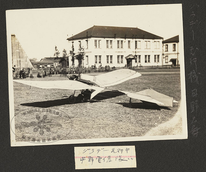 35/316枚目 画像ファイル名:SA-001_p.08-02.jpg 【オリジナルキャプション】 (右)グラデー飛行機 日野大尉 メモ:グラデー飛行キ 中野電信隊ニテ 日本陸軍のハンス・グラーデ。1910(明治43)年、東京 中野。 1910(明治43)年12月に東京・代々木練兵場において日野熊蔵の操縦で、徳川好敏のアンリ・ファルマンとともに公開で日本初の動力飛行を行った機体。写真はその飛行前の撮影と思われる。 参考 苅田重賀,2024,「1910年12月の日野、徳川両大尉の初飛行をめぐる考察」第304回日本航空協会講演会 苅田重賀,2024,「1910年の代々木での初飛行をめぐる考察」『航空と文化』日本航空協会,128号:p21-31 |