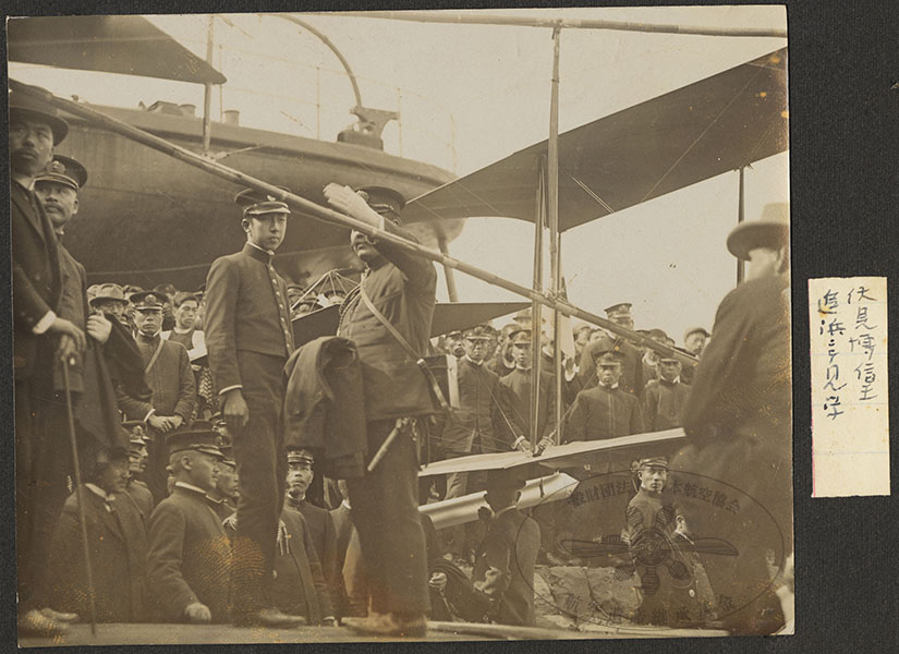 37/316枚目 画像ファイル名:SA-001_p.08-04.jpg 【オリジナルキャプション】 伏見博信王 追浜ニテ見学 伏見宮博信王とカーチス1912年型水上機。神奈川 追浜、撮影年未詳。 |
