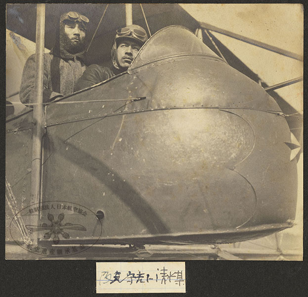 51/316枚目 画像ファイル名:SA-001_p.11-02.jpg 【オリジナルキャプション】 阪元守吉ト清水某 (航空協会注:公文書では「阪元」ではなく「坂元」と表記されている。) 坂元守吉(前席)とモ式(モーリス・ファルマン1912年型)。撮影地、年未詳。 坂元守吉(さかもともりきち)は第一期飛行機操縦将校、清水某は、『日本航空史 明治・大正編』にみられる中外商業新報(現在の日本経済新聞)の記者と同一人物かもしれない。 参考 日本航空協会,1956,『日本航空史 明治・大正編』航空遺産継承基金アーカイブ:p.48 「陸軍歩兵中尉坂元守吉叙勲ノ件」JACAR(アジア歴史資料センター)Ref.A10112849100、叙勲裁可書・大正七年・叙勲巻一・内国人一(国立公文書館) |