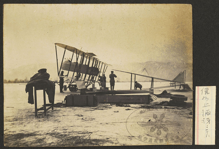 76/316枚目 画像ファイル名:SA-001_p.17-01.jpg 【オリジナルキャプション】 信州上諏訪ニテ 日本陸軍のモ式四型(モーリス・ファルマン1914年型)。1917(大正6)年2月、長野 諏訪。航空大隊の山地飛行演習の機会を利用し行われた甲府間山岳飛行及び諏訪湖で氷上着陸実験での様子。写真は珍しく機体の組立中と思われる。 参考 日本航空協会,1956,『日本航空史 明治・大正編』航空遺産継承基金アーカイブ:p.291 |