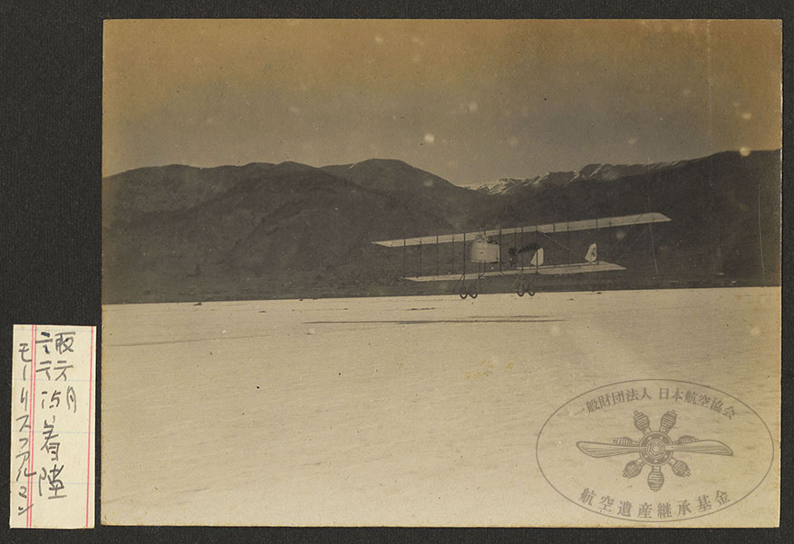 77/316枚目 画像ファイル名:SA-001_p.17-02.jpg 【オリジナルキャプション】 諏訪湖着陸 モーリスファルマン 日本陸軍のモ式1914年型(モーリス・ファルマン1914年型)42号機。1917(大正6)年2月、長野県の諏訪湖で撮影。 航空大隊の山地飛行演習の機会を利用し行われた甲府間山岳飛行及び諏訪湖で氷上着陸実験の様子。 参考 日本航空協会,1956,『日本航空史 明治・大正編』航空遺産継承基金アーカイブ:p.291 |