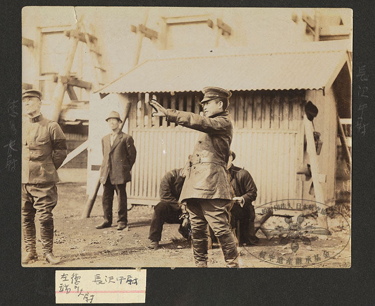 87/316枚目 画像ファイル名:SA-001_p.19-02.jpg 【オリジナルキャプション】 (左)徳川大尉、(右)長沢中尉、メモ:左端徳川大尉 長沢中尉 徳川好敏(左)と長沢賢二郎(中央)。撮影地、年未詳。 |
