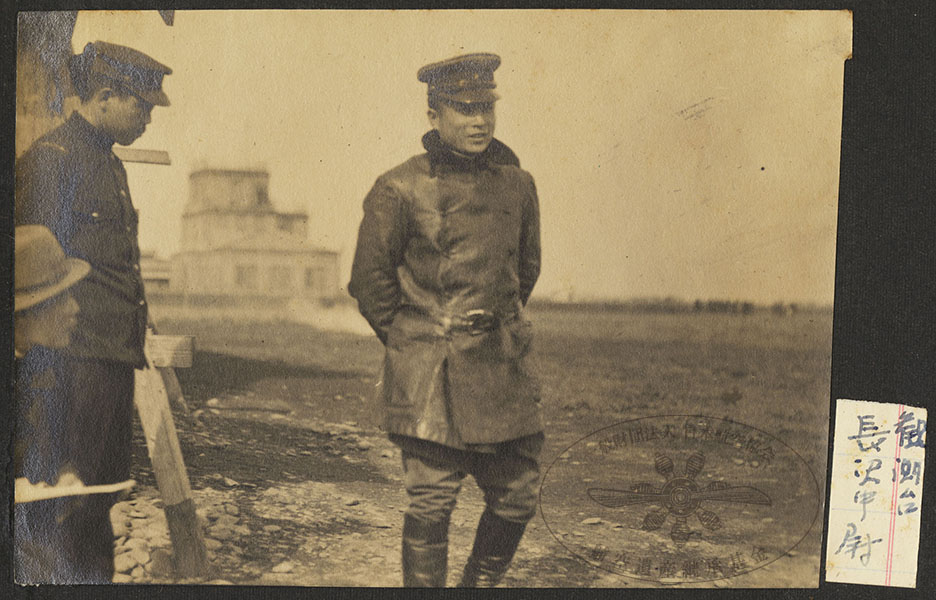 98/316枚目 画像ファイル名:SA-001_p.21-01.jpg 【オリジナルキャプション】 観測台 長沢中尉 長沢賢二郎(ながさわけんじろう)。埼玉 所沢、撮影年未詳。 1912(明治45)年に沢田秀中尉と共に操縦術の研究と飛行機の購入の任を受けフランスに渡り、翌年両者とも万国飛行免状を受ける。1913(大正2)年陸軍飛行機操縦術修得徽章が制定された際、第一期飛行機操縦将校とそれ以前に欧州で飛行免状を有していた、徳川大尉と沢田中尉、長沢賢二郎中尉が最初の佩用者となった。日本航空界の先達として、1937年に熊谷陸軍飛行学校長、1938年に明野陸軍飛行学校長を務めている。 参考 「明野陸軍飛行学校の歴史と飛行第二〇〇戦隊戦史」編集委員会,1979,『明野陸軍飛行学校の歴史と飛行第二〇〇戦隊戦史』.国立国会図書館デジタルコレクション https://dl.ndl.go.jp/pid/12013393 (参照 2025-04-28):p.30(39コマ目) 航空協会,1936,『日本航空史』乾.国立国会図書館デジタルコレクション https://dl.ndl.go.jp/pid/1864803:p.140 |