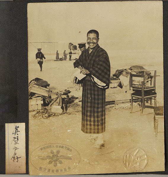 131/316枚目 画像ファイル名:SA-001_p.24-09.jpg 【オリジナルキャプション】 眞壁中尉 眞壁裕次。撮影地、年未詳。 眞壁は第二期操縦術修業将校。風景から1917(大正6)年の諏訪湖の氷上着陸実験の際に撮影された写真の可能性がある |