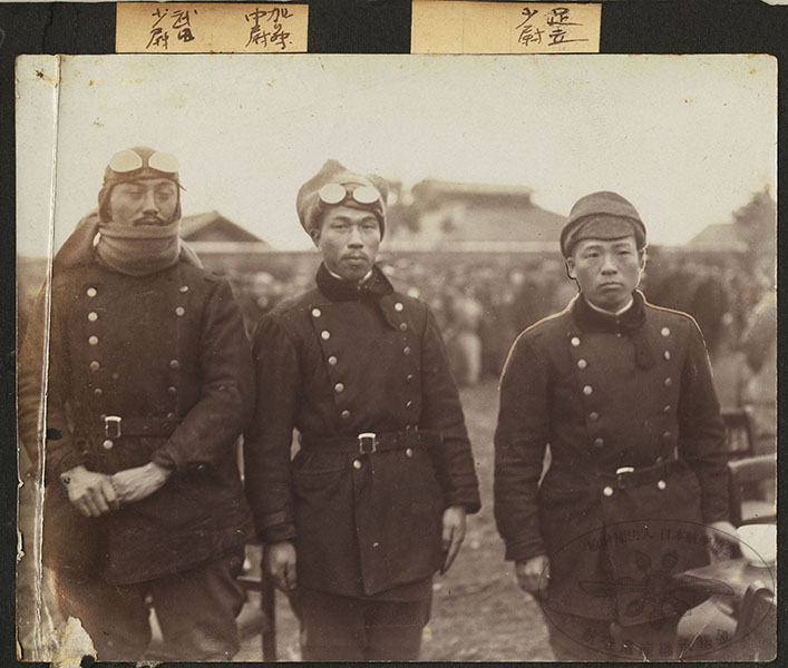152/316枚目 画像ファイル名:SA-001_p.27-01.jpg 【オリジナルキャプション】 武田少尉 加藤中尉 足立少尉 (航空協会注:中央は川上親孝) 左から武田惣治郎、川上親孝、足立亭。撮影地、年未詳。3名とも第三期操縦術修業将校 |