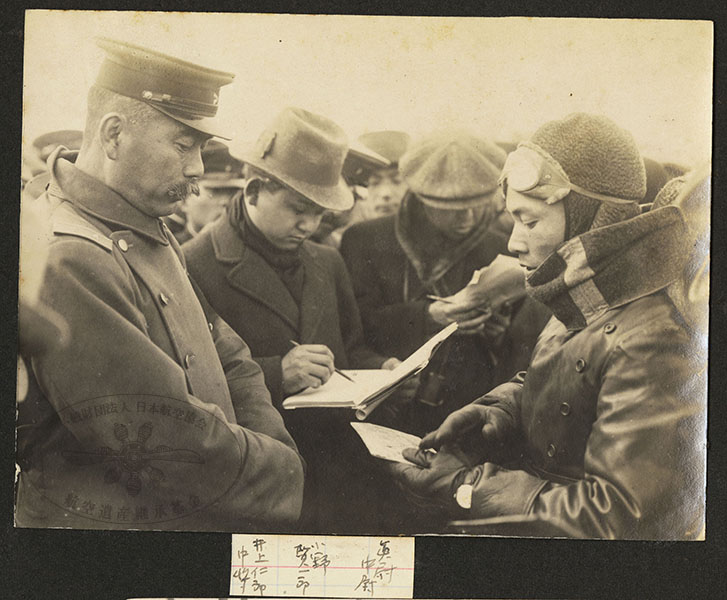 169/316枚目 画像ファイル名:SA-001_p.29-03.jpg 【オリジナルキャプション】 井上仁郎中将 小野賢一郎 眞壁中尉 左から、井上仁郎、小野賢一郎、眞壁裕次、撮影地、年未詳。 井上仁郎は日本航空界の草創期より携わり、臨時軍用気球研究会において、1909(明治42)年に委員として、1916(大正5)年からは6代会長となる。1920(大正10)年に療養中のところ肺炎を併発し亡くなる。眞壁裕次は第二期操縦術修業将校。小野賢一郎は毎日新聞社の記者。 参考 『日本航空史』乾,航空協会,1936. 国立国会図書館デジタルコレクション https://dl.ndl.go.jp/pid/1864803:p. 325 「小野賢一郎 日本美術年鑑所載物故者記事」(東京文化財研究所)https://www.tobunken.go.jp/materials/bukko/8714.html(閲覧日 2025-09-25) |