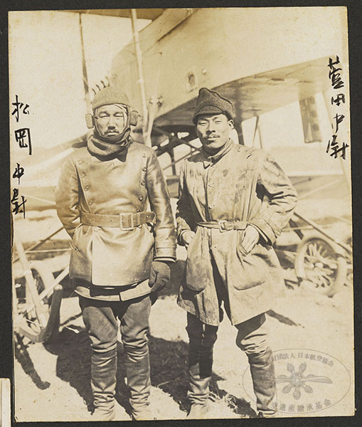180/316枚目 画像ファイル名:SA-001_p.31-02.jpg 【オリジナルキャプション】 (直接書込み)松岡中尉 菅田中尉 松岡勝蔵、菅田茂実とモ式四型(モーリス・ファルマン1914年型)。撮影地、年未詳。 両名とも第五期操縦術教育を受けている。松岡勝蔵は1918(大正7)年にイタリア飛行団員として派遣され高等飛行術を学ぶ 参考 「欧第215号其53 10月12日 自大正7年12月12日 至大正8年7月26日 伊太利派遣員業務詳報(其2)」JACAR(アジア歴史資料センター)Ref.C08040152600、「大正3.4年以降戦役出兵 其4の内其1 業務詳報綴 (総受領簿を付す)(人事局(恩賞課を除く) 軍務局(軍事課を除く) 法務局)陸軍省」(防衛省防衛研究所) |