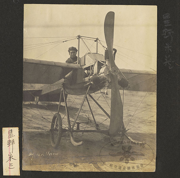 251/316枚目 画像ファイル名:SA-001_p.43-06.jpg 【オリジナルキャプション】 左メモ:星野米三 (右)星野米蔵 直接書込み:by H. I. Unno (航空協会注:名前の表記は、「米三」と「米蔵」の両方の表記が星野自身執筆の雑誌記事、書籍に見られる。詳細は未詳) 星野米三のドゥペルデュサン単葉機。アメリカ ロサンゼルス、撮影年不明。 民間飛行家の星野米三は1906年に15歳で単身アメリカへ渡り、1913(大正2)年国際飛行免状を取得し、帰国後は独自に設計した複葉機を製作している。写真に書かれている「by H. I. Unno」は写真を撮影した海野幾之介(アメリカ滞在時の同胞飛行家)のサイン。海野は"Henry"という名前も使用していたと思われる。 参考 日本航空協会,1956,『日本航空史 明治・大正編』航空遺産継承基金アーカイブ:p.522 平木国夫,1982,『日本飛行機物語』首都圏篇,冬樹社.国立国会図書館デジタルコレクション https://dl.ndl.go.jp/pid/12062593:p.29, 57-58 星野米三,1915,『墜落の日まで : 附・飛行機講話』,大成堂.国立国会図書館デジタルコレクション https://dl.ndl.go.jp/pid/954963:p.170 |