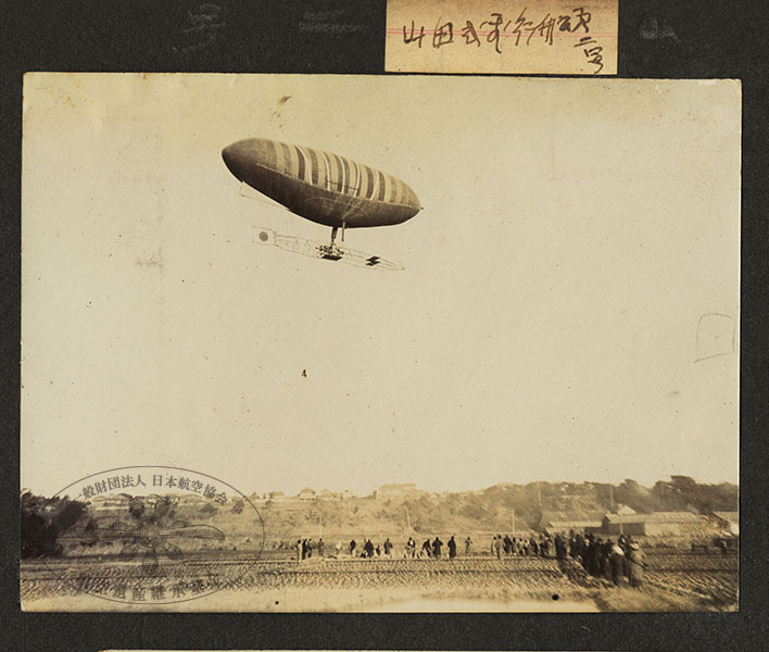 265/316枚目 画像ファイル名:SA-001_p.46-02.jpg 【オリジナルキャプション】 山田式飛行船第二号 山田猪三郎の山田式2号飛行船。1911(明治44)年2月、東京 大崎。 1911(明治44)年2月7日に初飛行し、8日には折原国太郎技師、後藤半七郎、白戸栄之助ら4名を乗せて野外飛行を実施するもエンジンの故障で青山練兵場に不時着する。修理後の同月23日、飛行準備中に強風で吹き飛ばされ、大森海岸上空で破裂、墜落した。 参考 日本航空協会、1956、『日本航空史 明治・大正編』 航空遺産継承基金アーカイブ:p. 36 野沢正,2002,『モデルアート臨時増刊 No.327 日本航空機辞典 上巻 1910-45』,モデルアート社(航空図書館所蔵):p. 366 |