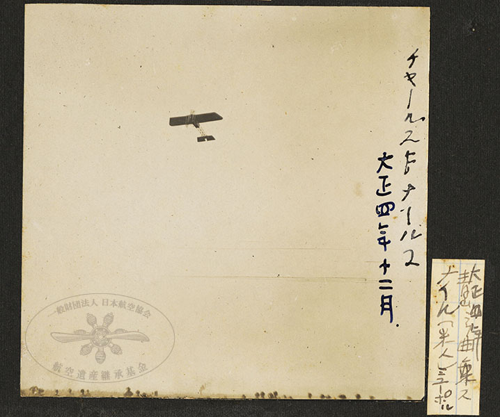 275/316枚目 画像ファイル名:SA-001_p.47-04.jpg 【オリジナルキャプション】 大正四年 青山デノ曲乗ス ナイル(米人)ニューポール (直接書き込み)チャールズFナイルス 大正四年十二月 (航空協会注:機体名誤り、正しくはブレリオ式単葉機) ナイルス飛行士(Charles Franklin Niles)のブレリオ式単葉機。1915(大正4)年、東京 青山。 アメリカの飛行家で、1915(大正4)年2名の技師と共に来日、東京 青山練兵場で宙返り飛行を披露。1916(大正5)年に再来日し兵庫県で飛行を行う。再来日を誓うも帰国後に機体の空中分解により死亡している。 参考 日本航空協会,1956,『日本航空史 明治・大正編』航空遺産継承基金アーカイブ:p.232 奈良原三次,1916,「ナイルス氏の飛行を見て」『工業』8(82),工業改良協会出版部工業学院.国立国会図書館デジタルコレクション https://dl.ndl.go.jp/pid/1560844 :p.32(23コマ目) |