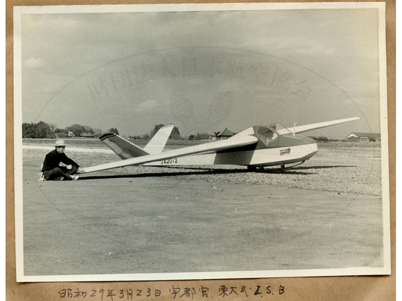 63/98枚目 「昭和29年3月23日.宇都宮.東大式L.S.B.」 東大LBS−1(登録記号:JA2012)。 1954年3月23日(火)、宇都宮飛行場 画像ファイル名:07−023−001−035−01.jpg |