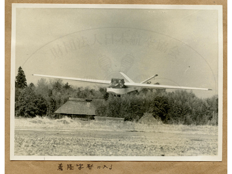 70/98枚目 「着陸姿勢に入る」 東大LBS−1(登録記号:JA2012)。1954年3月23日(火)、宇都宮飛行場 画像ファイル名:07−023−001−038−02.jpg |