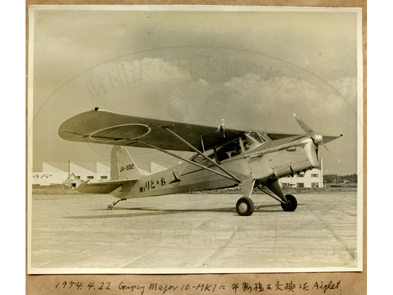 75/98枚目 「1954.4.22. Gipcy Mejor10−MK1に発動機を交換したAiglet」 オースターJ5Fエイグレット(登録記号:JA3012)。1954年4月22日(木) 画像ファイル名:07−023−001−041−01.jpg |