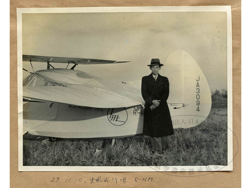 9/117枚目 「29.11.10. 東航飛行場 R−HM.」 新立川航空機の立飛R−HM(登録記号:JA3094)。1954年11月10日(水)、東航飛行場 画像ファイル名:07−023−009−005−04.jpg |