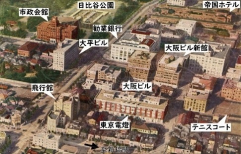 11/26、Web「今月の一枚」を更新し、1930年代の日比谷公園周辺を上空から撮影した着色写真を紹介しました。日本航空協会の前身、帝国飛行協会時代の飛行館も写っています。