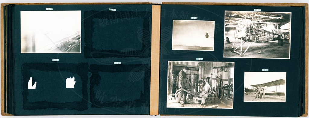冒頭の写真は、故・藤田俊夫氏から寄贈された写真アルバムに収められていたものです。生前の藤田氏に伺ったところによれば、このアルバムには、元々『航空情報』編集部が所有していたものの、不要になって藤田氏がもらい受けたという来歴があります。アルバムを開くと、陸軍航空隊の公式写真、民間飛行家の記念写真、空中からまかれたビラといった雑多な大正期の航空史資料が、ゆるやかな脈絡を持って貼り付けられたり、あるいは剥がされたりした跡があります。このことから、このアルバムは1920〜30年代に航空雑誌(例えば『航空時代』など)の記者が収集した資料を貼り付けたアルバムではないかという仮説を立てることができます。
