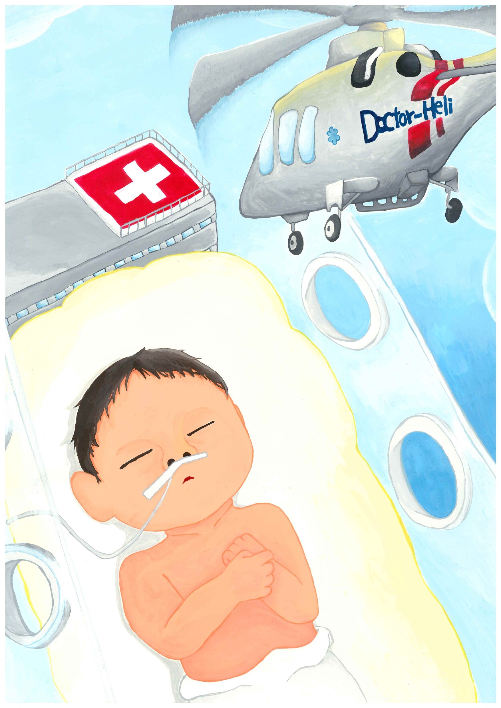 - ・救護ヘリをさらにその上から見下ろす角度、すごい想像力ですね。