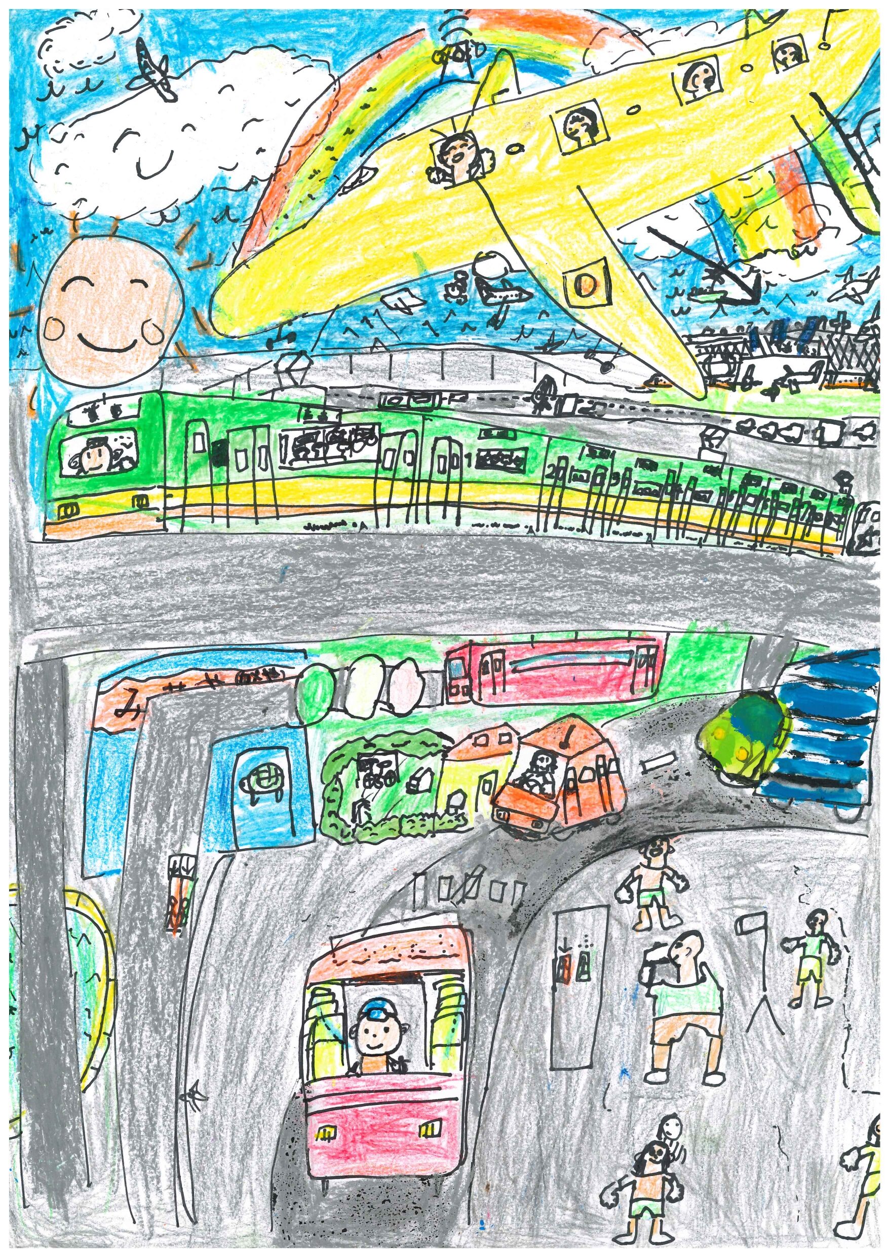 - ・乗り物がすきなのですね、雲も太陽もニコニコしていて楽しくなりました。