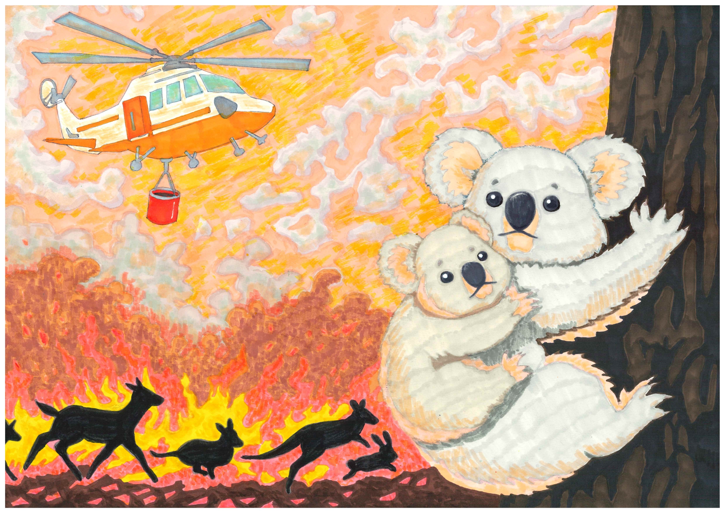 - ・一目でオーストラリアの山火事と判りました。いろんな動物、みんな助けたいな!